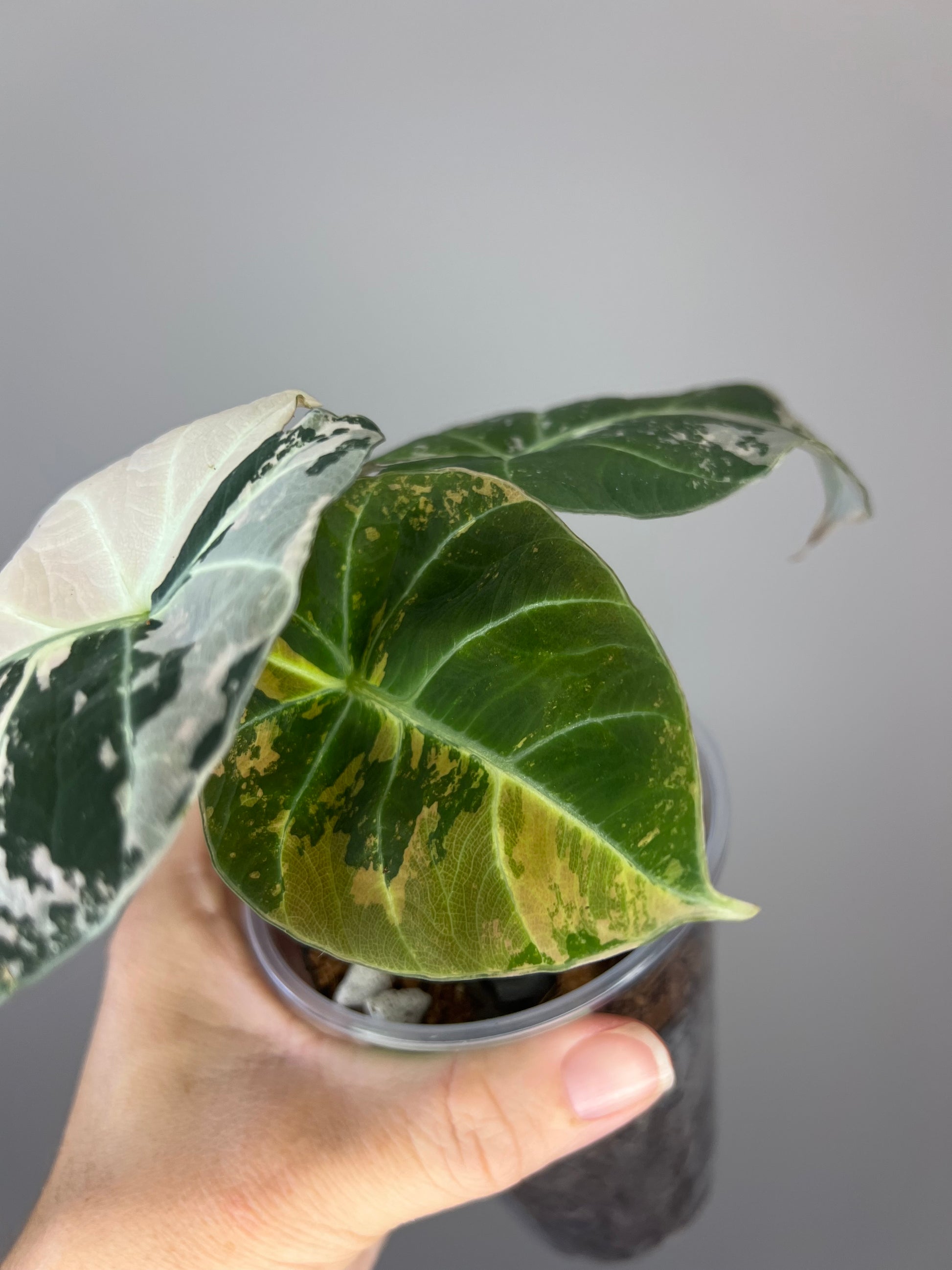 The Alocasia Black Velvet Pink Variegated is an extraordinary rare find! This stunning variety combines the classic velvety black leaves of Black Velvet with gorgeous pink variegation, creating a dramatic and highly coveted specimen.